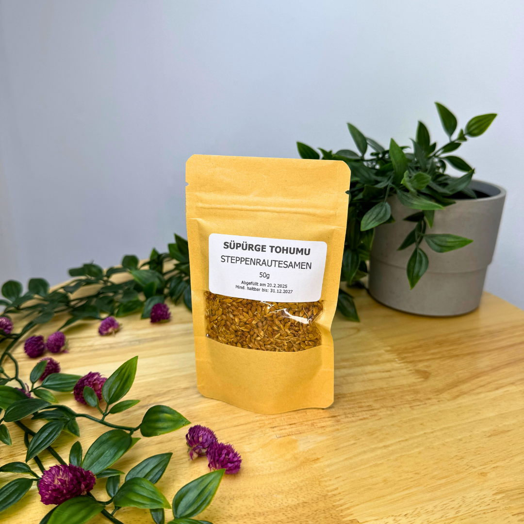 Steppenrautesamen für die Kultivierung dieser robusten Wildkrautpflanze. Die Steppenraute besticht durch ihre feinen, gefiederten Blätter und zarten gelben Blüten, die Bienen und Schmetterlinge anlocken. Diese pflegeleichte Staude bevorzugt trockene, sonnige Standorte und sandige bis kiesige Böden. Sie zeichnet sich durch außergewöhnliche Trockenheitstoleranz aus und eignet sich hervorragend für Steingärten, Wildstaudenpflanzungen und ökologische Gärten. Winterhart und langlebig.